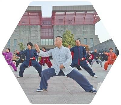 安徽省亳州市蒙城县博物馆广场上,市民在打太极拳。 胡卫国摄(人民视觉)